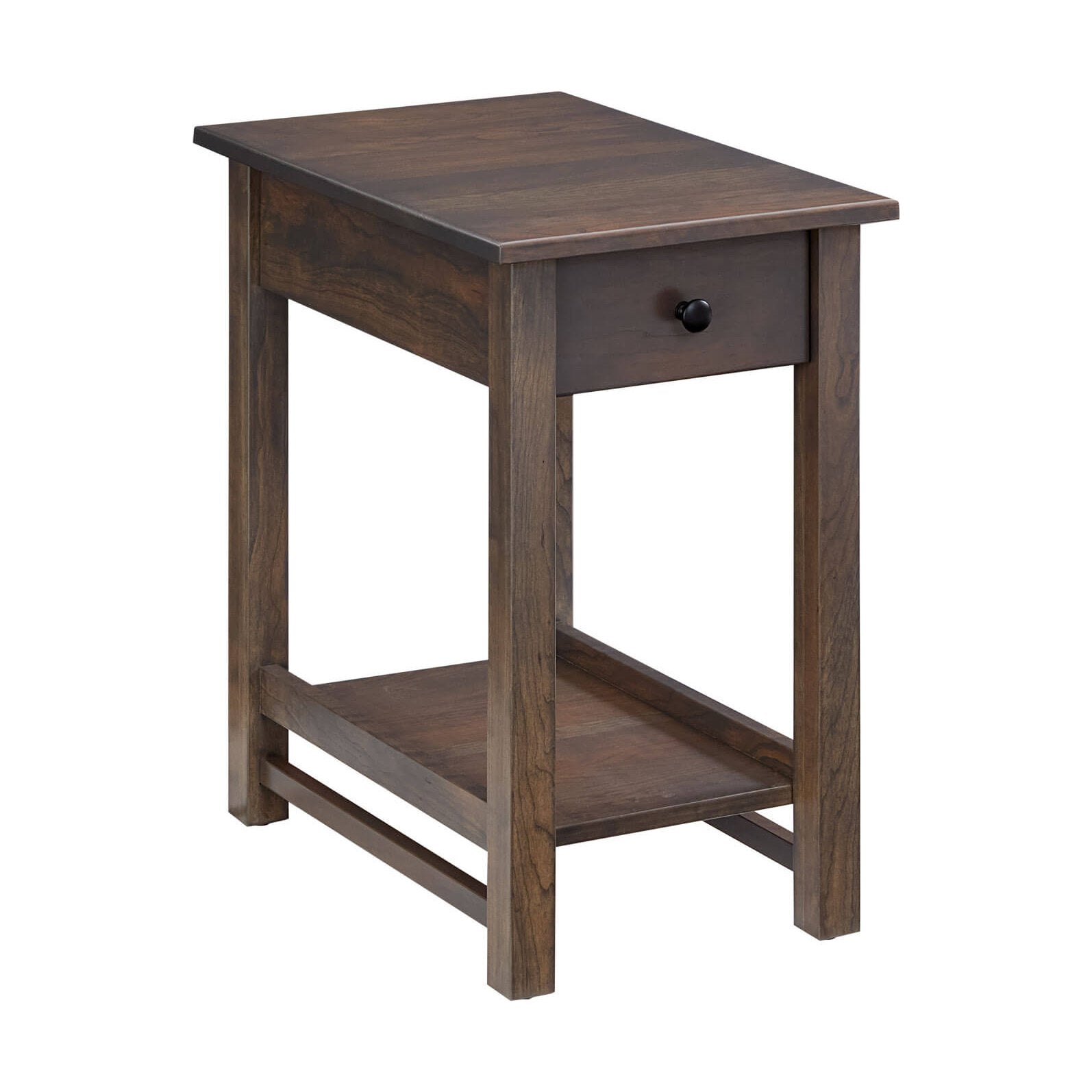 Its thoughtfully scaled design fits effortlessly into any space, offering just the right amount of surface area for a lamp, book, or cup of coffee, while a convenient drawer provides discreet storage for everyday essentials. With 10 hand-applied stains and 8 hardware options to choose from, you can tailor it to suit your home’s style.